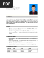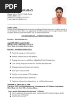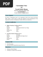 This document contains a sample curriculum vitae (CV) for Mahmudul Chowdhury. It includes personal details like name, date of birth, address, contact information. It also lists his educational qualifications including current studies in tourism and hospitality management and previous degrees from Dhaka University. Work experience is provided for 2007-present as a college admin and 2006-2007 in customer service. Hobbies and family member names are also included at the end.