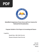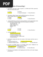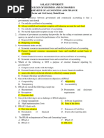 The document is an Accounting and Finance Exit Exam for Ethiopia consisting of multiple-choice questions covering key concepts in financial accounting, financial statements, ratios, and principles. Each question provides four answer options, with the correct answer indicated. Topics include financial accounting purposes, asset classifications, financial ratios, and auditing principles.
