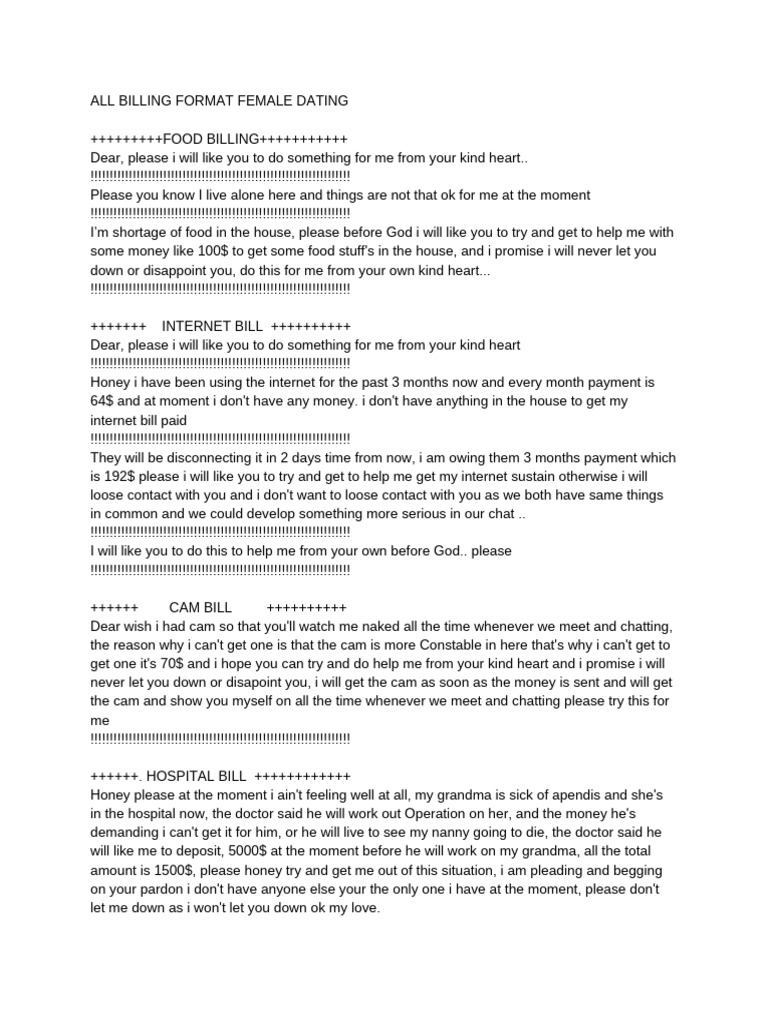ALL BILLING FORMAT FEMALE DATING