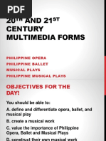 arts like theater. The use of musical sounds, songs, dialogue and dance allows how an