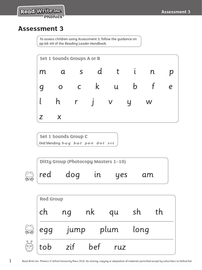 Read Write Inc. Phonics Assessment 3