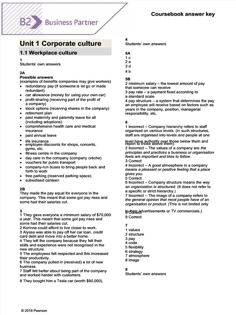 Business Partner b2 Coursebook Answer Key
