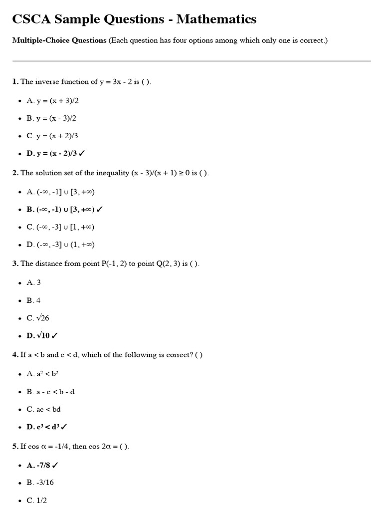 CSCA Sample Questions - Mathematics