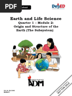 The document provides an introduction to Earth Science focusing on the origin and structure of the Earth. It covers the characteristics of the Earth that support life and how these characteristics sustain the needs of living organisms. The module aims to help learners understand these concepts and apply them to real-life situations.