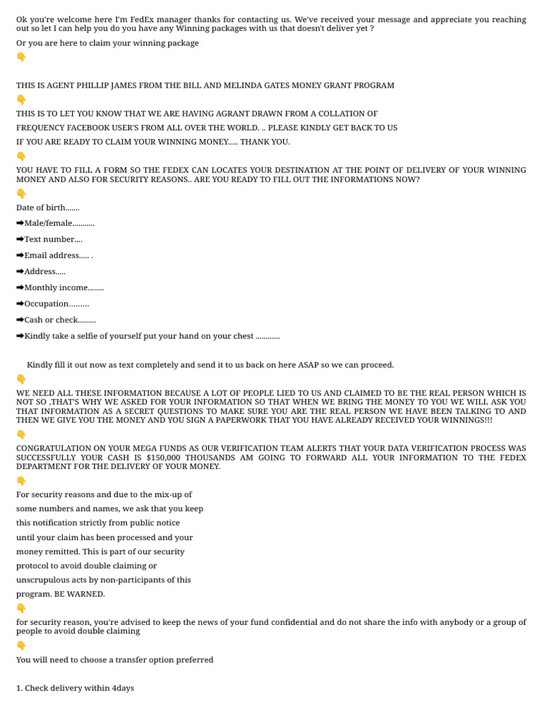 YOU HAVE TO FILL A FORM SO THE FEDEX CAN LOCATES YOUR DESTINATION AT THE POINT OF DELIVERY OF YOUR WINNING