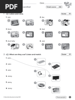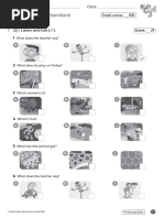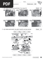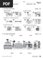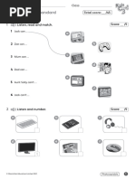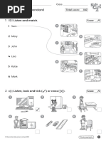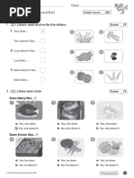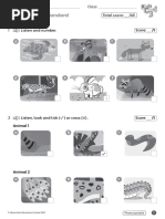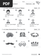 The document uses a variety of assessment strategies to gauge students' understanding, including multiple listening, reading, and speaking exercises. Listening activities involve ticking or circling correct responses based on audio stimuli, testing comprehension and vocabulary identification skills . Reading and writing tasks assess students’ ability to choose correct adjectives or complete sentences with the correct structure, providing scores for each action . For speaking, the focus is on both accuracy and the ability to communicate effectively, with points rewarded for correct pronunciation and dialogue completion, thus measuring fluency and practical language use .