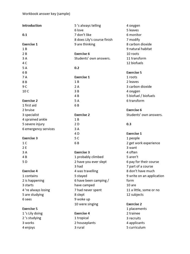 Workbook answer key (sample)