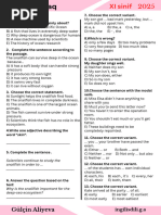 MÖVZU SINAQLARI – INTERROGATIVE SENTENCE 2022-2023