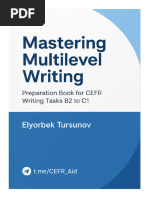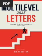This document is a guide for preparing for the MULTILEVEL writing exam, created by Muhammadayub Jamoliddinov. It outlines the exam format, including tasks for writing informal and formal emails, as well as blog posts or articles, with specific word count requirements for each level. The document also provides example emails and phrases for starting and concluding letters, along with various writing prompts for practice.