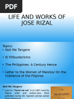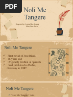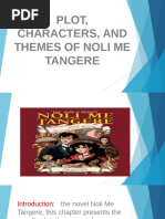 The document summarizes the main characters in Noli Me Tangere by Jose Rizal. It describes Crisostomo Ibarra as the protagonist who studied in Europe and returns engaged to Maria Clara. It also describes the antagonist Padre Damaso and other characters including Elias, Padre Salvi, Captain Tiago, and minor characters like Sisa and her sons.