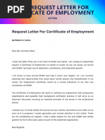 The document illustrates common practices by showing the formal request for a Certificate of Employment, a document often needed for job applications. It includes polite language, an expression of gratitude for past employment, and a specific request for a formal document that verifies employment details. This reflects standard business etiquette in obtaining employment verification .