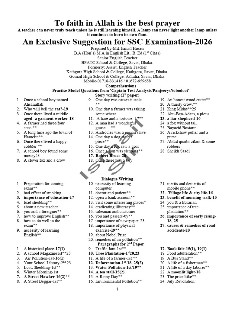 SSC 2026 English Exam Suggestions